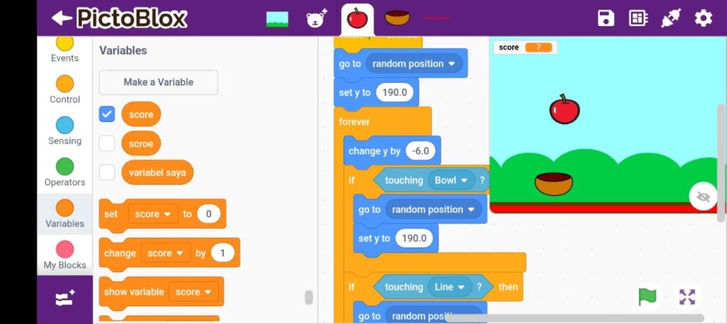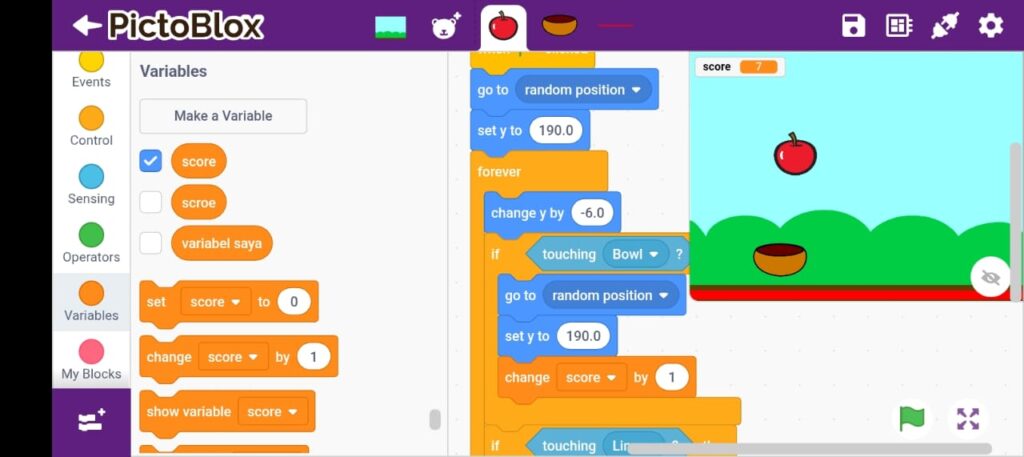 Di PictoBlox, skor disimpan dalam sesuatu yang disebut Variable (Variabel).
